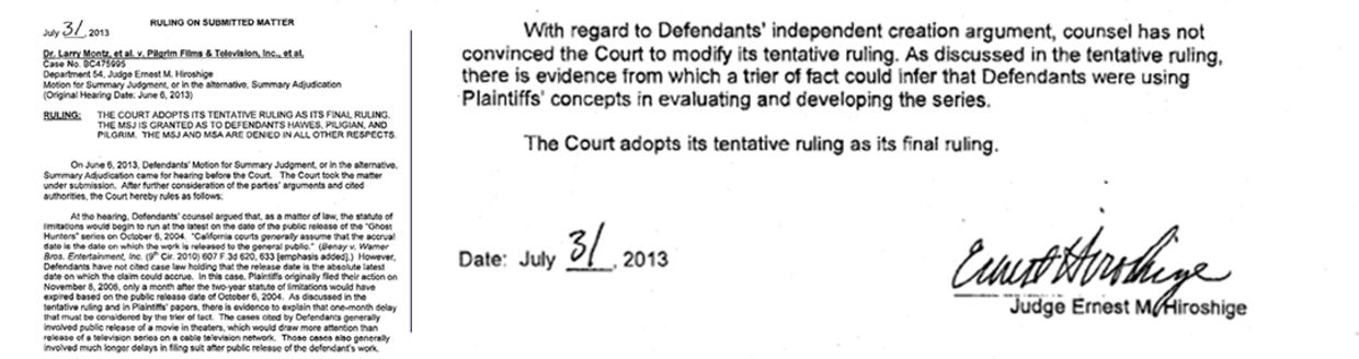 In a shocking turn of events, plaintiffs are informed on Thursday, September 5, 2013 that Tom Girardi ordered the court to cancel the trial against NBC Universal days earlier providing the legally fraudulent excuse that 'NBC wants to conduct more depositions on plaintiffs' (original depositions conducted in Los Angeles in February 2008). This effectively killed the case and adding insult to injury, Judge Nora Manella (associated with Tom Girardi) ruled on an appeal initiated without plaintiff knowledge and by plaintiffs' own attorney Tom Girardi, that plaintiffs missed an attorney 101 statute of limitations (as did roughly 30 judges and dozens of attorneys), overruling Judge Ernest M. Hiroshige's July 31, 2013 summary judgement ruling.